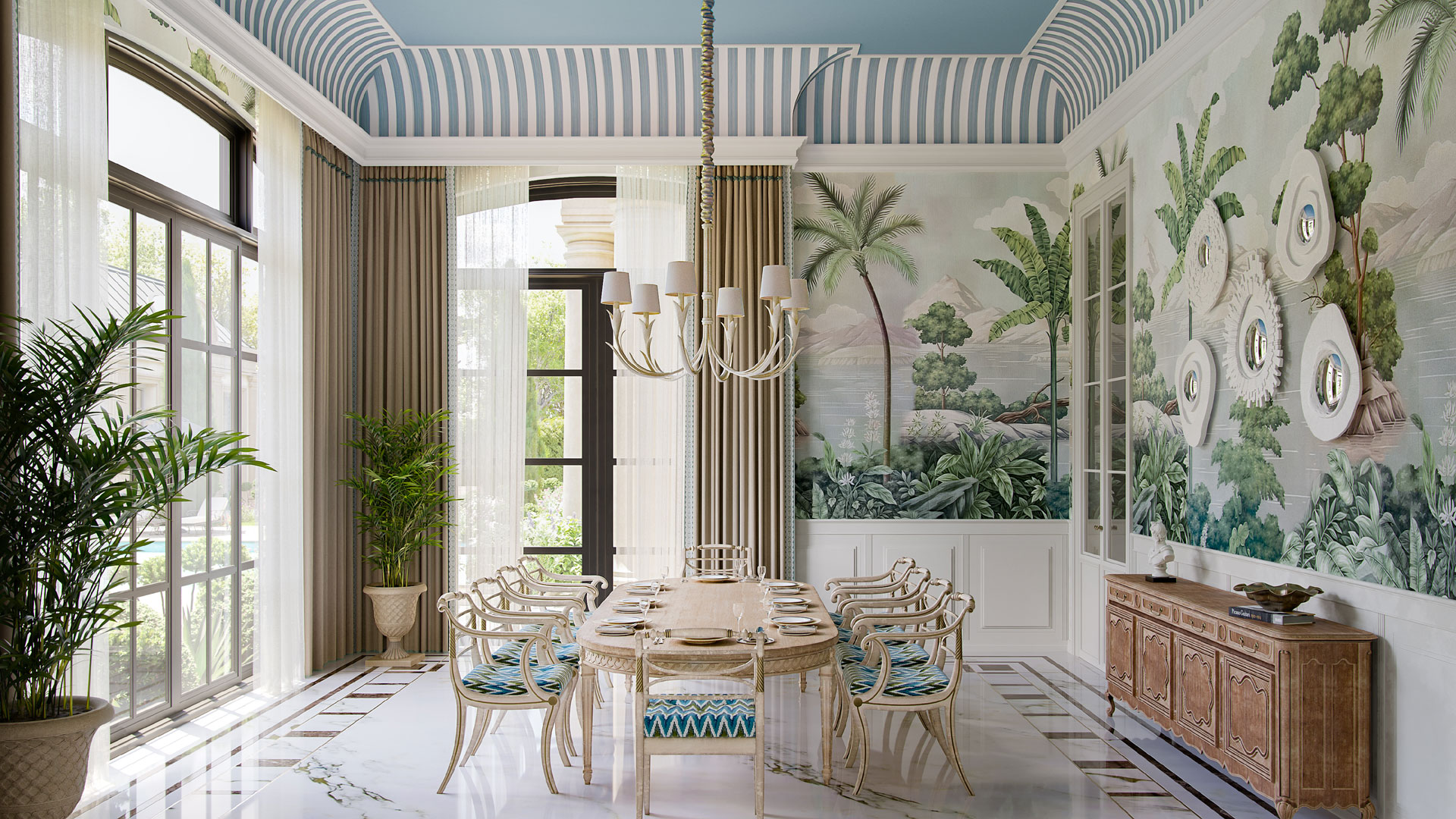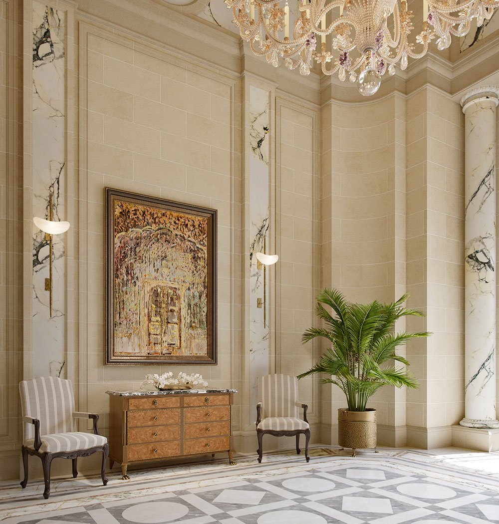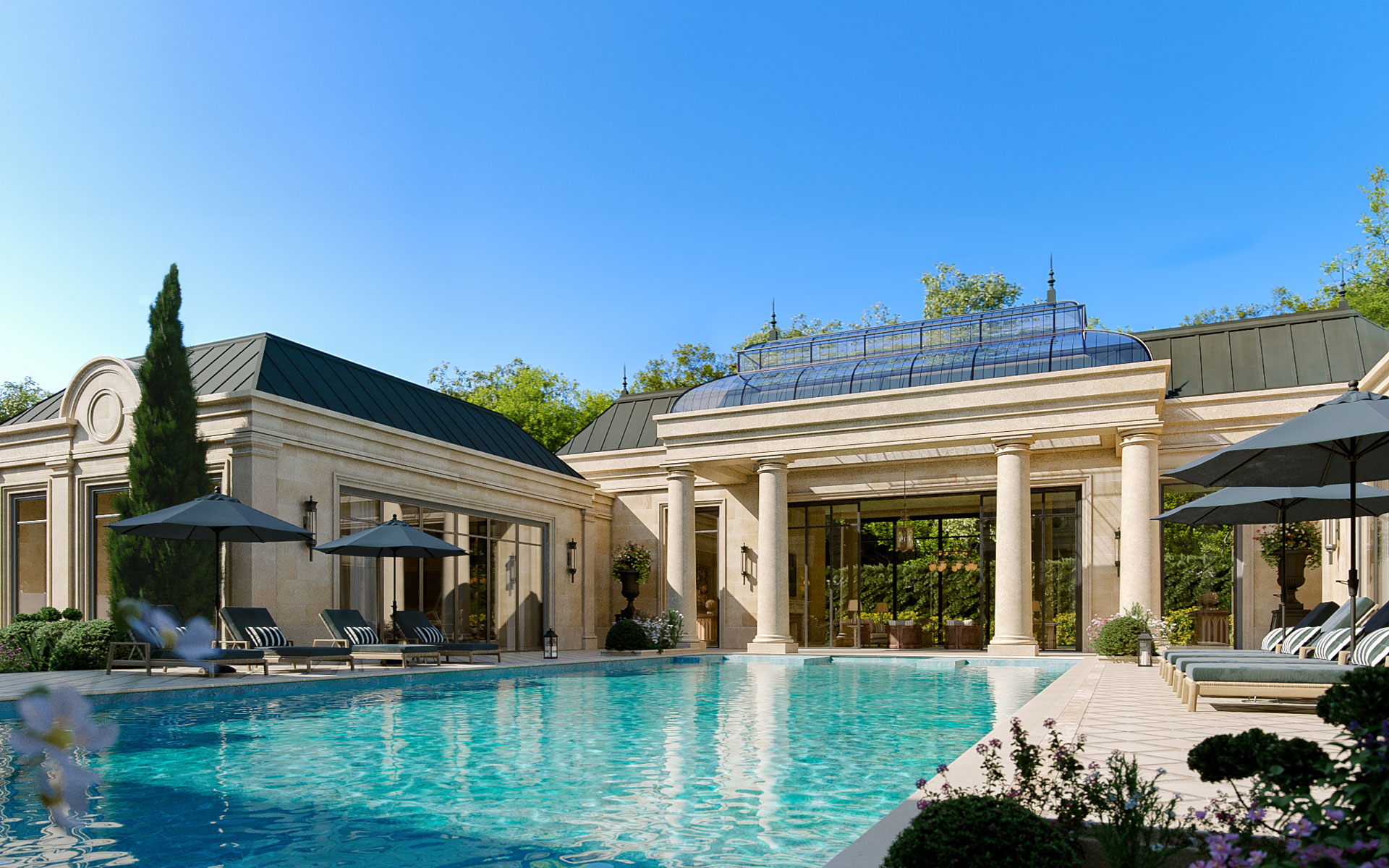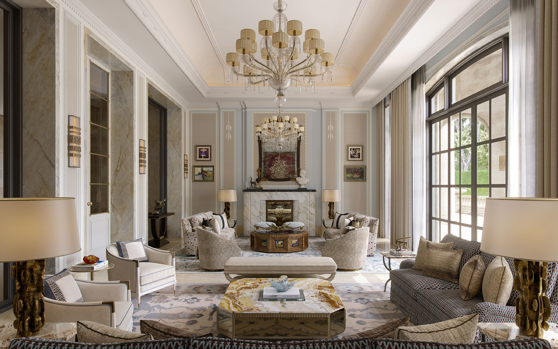 This residence embodies contemporary classical character, defined by spacious colonnades, stately symmetry, and exquisitely detailed façades. The client desired for a lavish experience and our thoughtfully conceptualized layout meets it perfectly. Honoring the client’s preference, each family member’s bedroom suite with a private lounge are meticulously curated and unfold deeper within the plan, offering a unique and private retreat. Outdoor pools are impeccably integrated as calm extensions of the interiors, enhancing flow and a resort-like living experience.