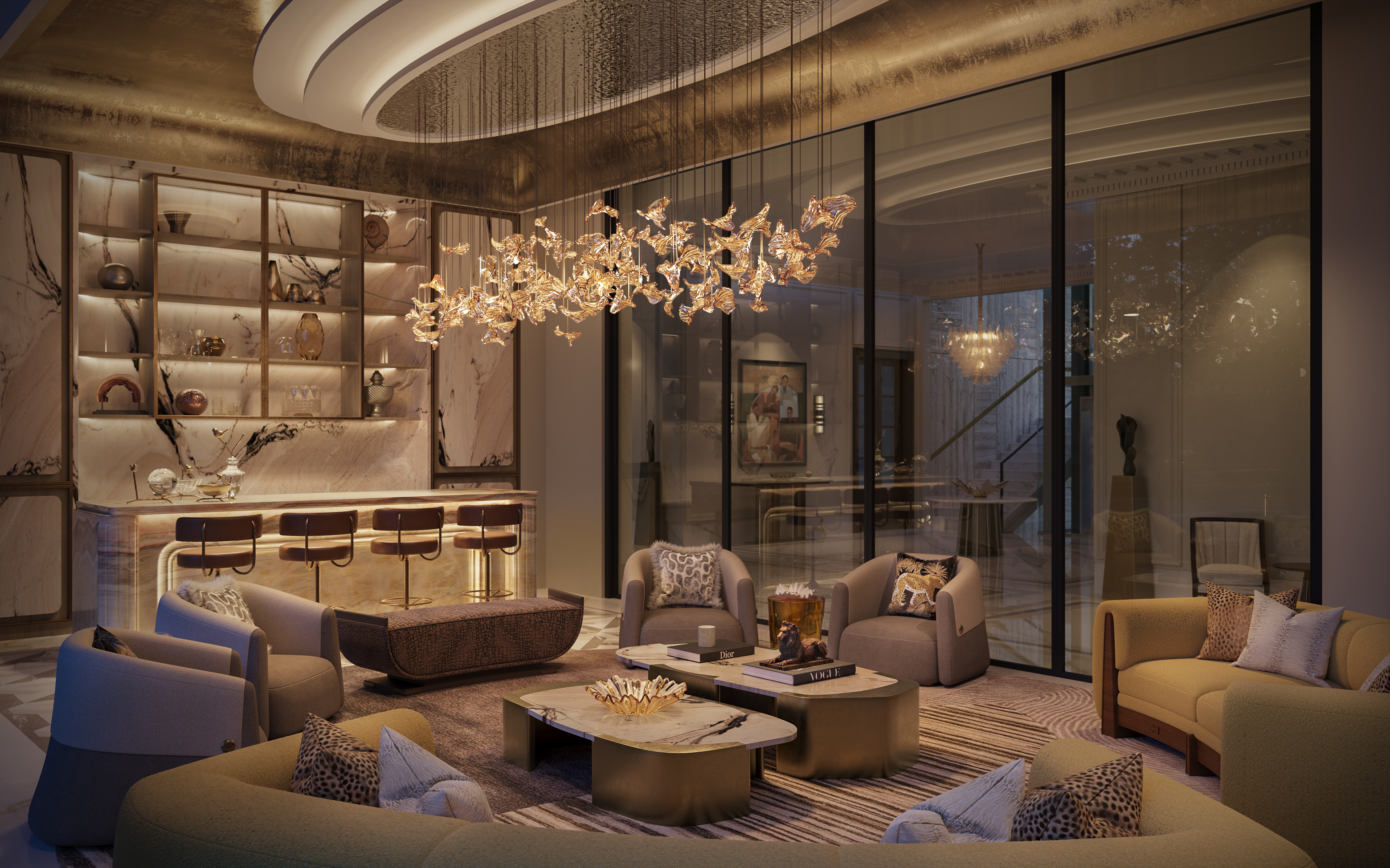 Each piece is considered for proportion, posture, comfort, craftsmanship, and its emotional resonance within the space. Sculptural consoles, bespoke lounge ensembles, hand-crafted dining furniture sets and highly refined accent pieces transform each room into a symphony of materials and form.